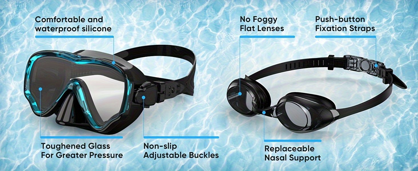 Adult swimming goggles, 180° panoramic view, anti-fog and non-leakage swimming goggles, with replaceable nose bridge, swimming gear