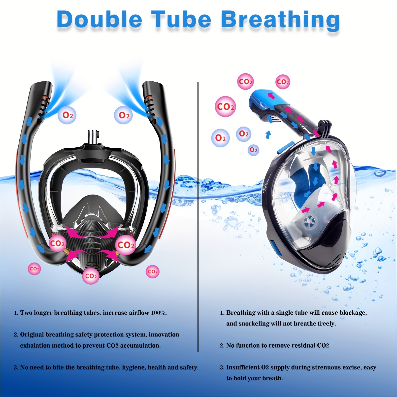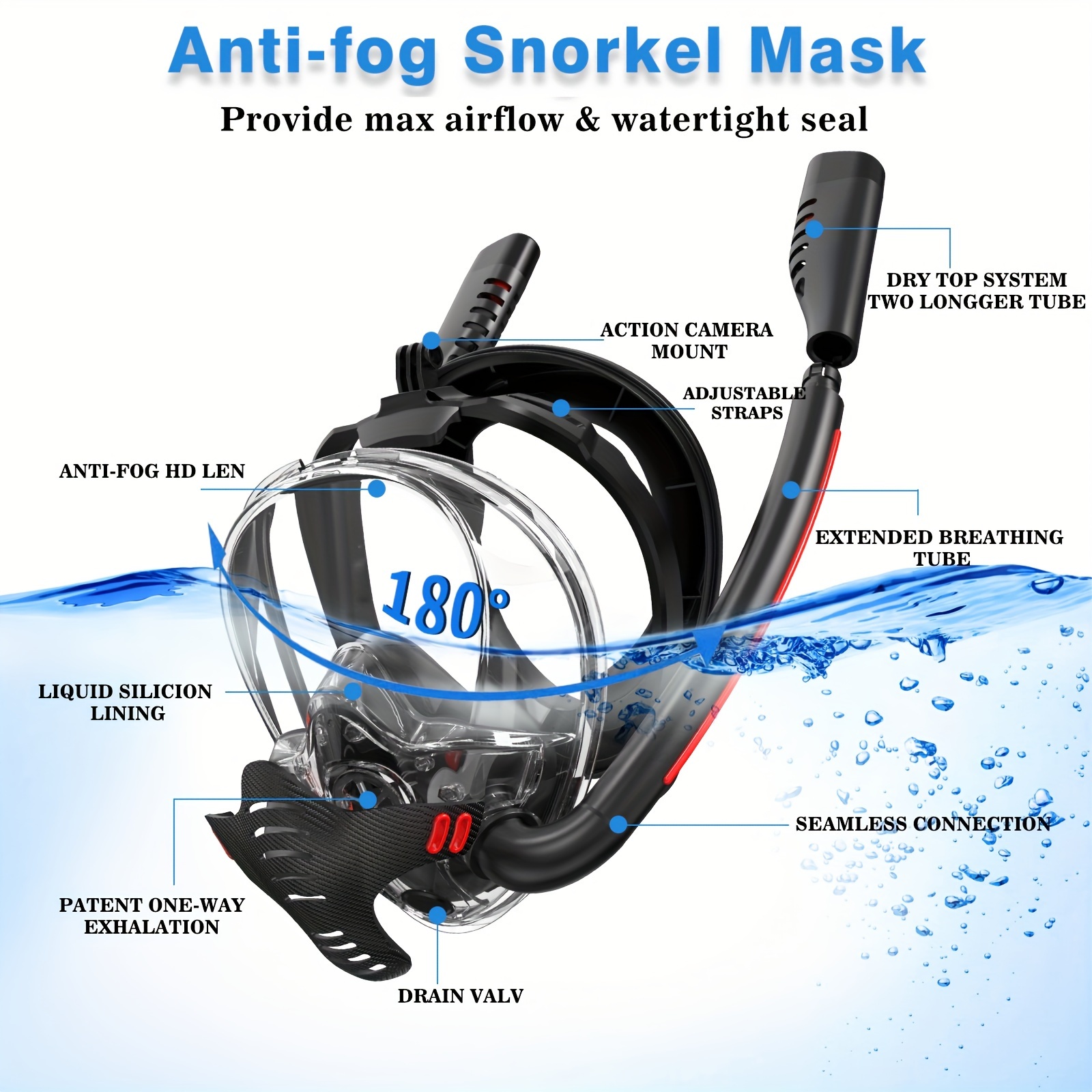 Full cover snorkeling mask, 180 degree panoramic HD snorkeling mask, adult male and female leak proof dry top set